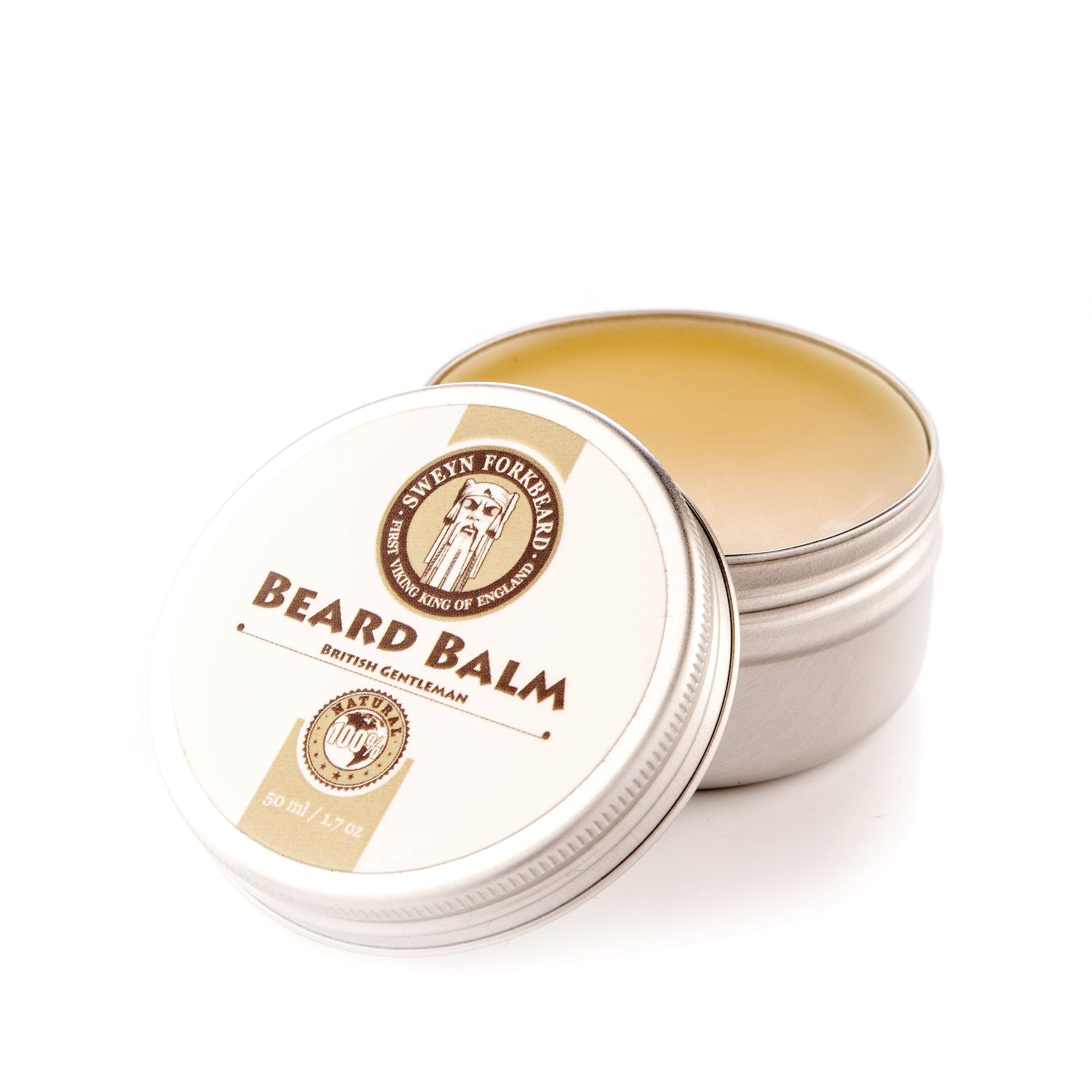 You will receive Sweyn Forkbeard British Gentleman Beard Balm in 50ml / 1.7oz aluminum tin. Unlike other beeswax-based balms, you will find our British Gentleman Beard Balm easy to apply.