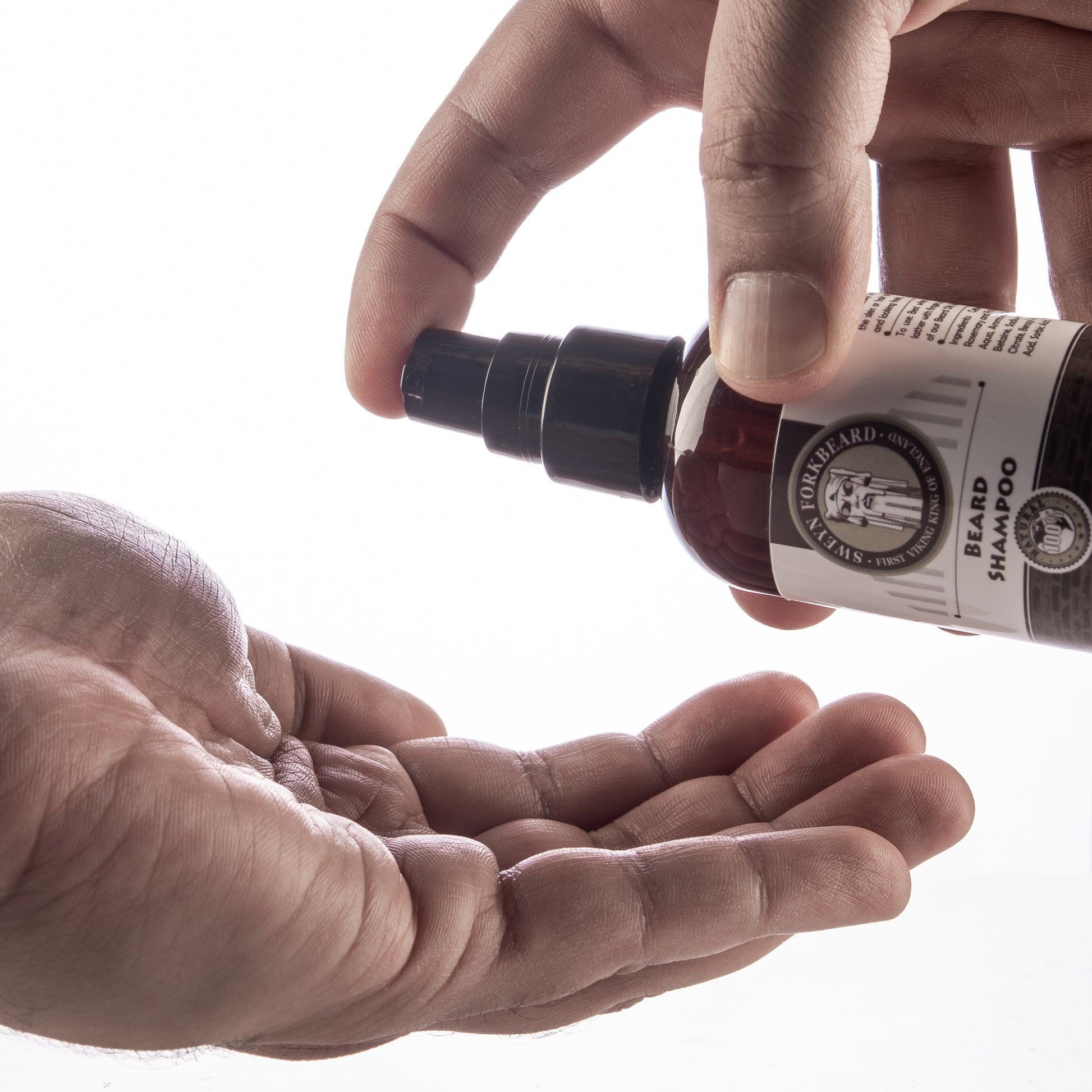 You will get Sweyn Forkbeard Beard Shampoo in a 100 ml/3.5 oz amber glass bottle with a high-quality pump for easy and accurate dispensing. We use quality packaging to protect you from unexpected shampoo leakages.